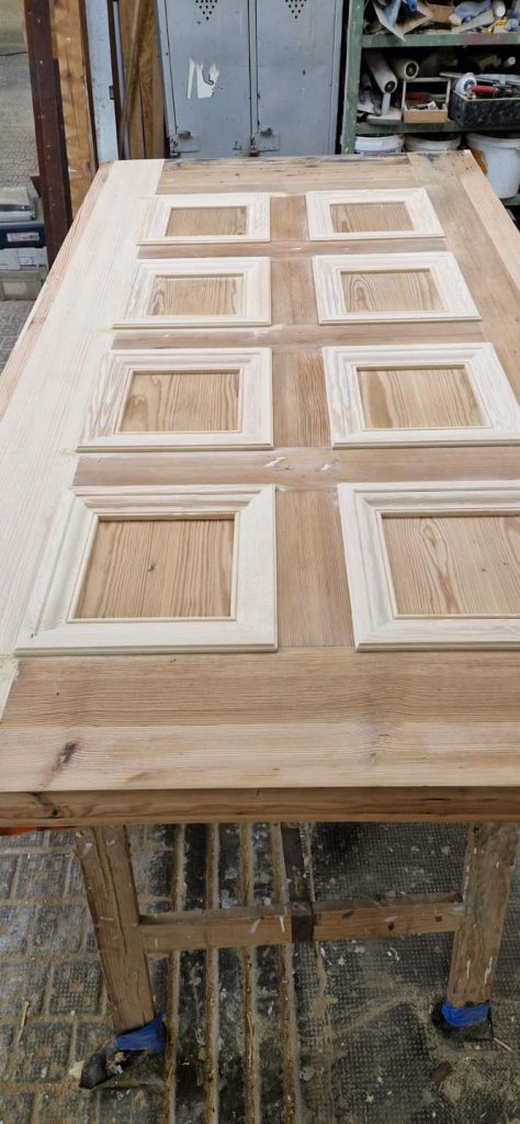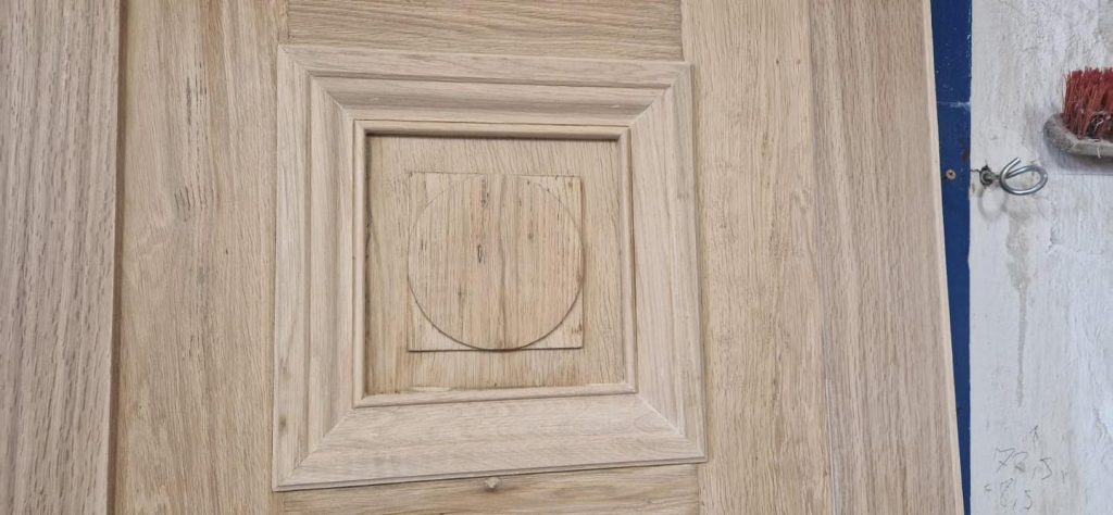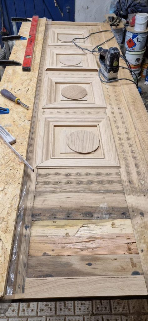 Nasze rozwiązanie? Zdecydowaliśmy się na precyzyjną rekonstrukcję. Zamówiliśmy specjalnie profilowany frez, który pozwolił nam odtworzyć pierwotny kształt uszkodzonych listew. Dzięki temu udało się przywrócić drzwiom ich oryginalny charakter i estetykę, nie tracąc przy tym zgodności z ich historycznym stylem.